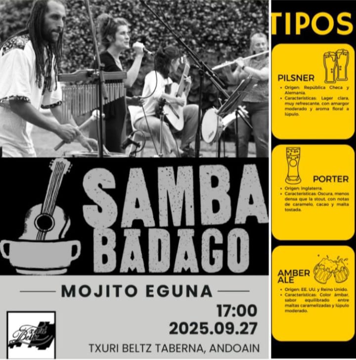 Samba badago taldeak izen bereko diskoa kaleratu du eta aurkezpena Andoaingo Txuri beltz tabernan egingo dute larunbata irailak 27, 17:00tan doan.